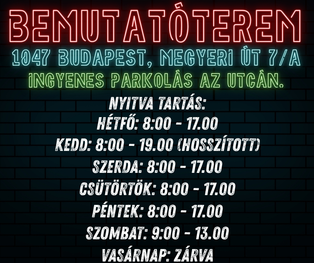 Online katalógusunkban a kínálatunk egy része megtekinthető, de a bemutatótermünkben lényegesen több termék látható élőben.